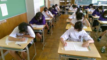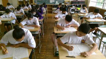 昨年度からテストの日程が変わりました。1日目は通常通り授業を行って、6時間目に保健体育のテストをします。1年生にとって初めての定期テスト。やや緊張した面持ちで、テストに臨んでいました。