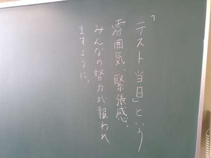 テスト最終日、担任より心をこめて書かれたメッセージ!気合いが入ります!