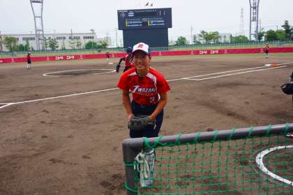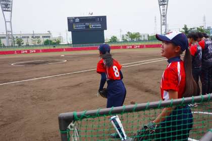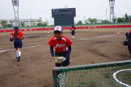 メンバー一人一人の名前がアナウンスされ、守備位置についていきます。試合前にプロの選手が紹介されるのと同じようにしていただきました。生徒たちは少し照れながらも、いい笑顔でグランドに飛び出していきました。とてもかっこよかったです。