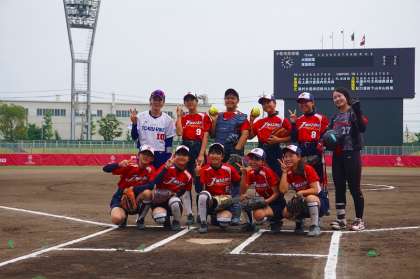 始球式の後、東海理化と太陽誘電の選手の方からサインボールをいただき、一緒に記念撮影をしていただいて、セレモニーは終了しました。