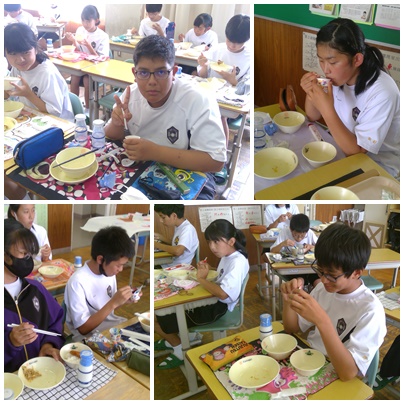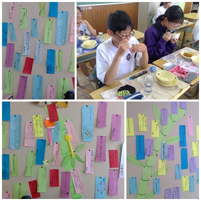 今日の給食に、オクラ入りの七夕汁や七夕ゼリーが出ました。