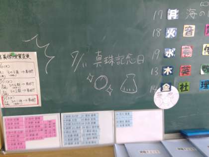 今日も背面黒板には、何やら書かれています。今日は何の日?3年1組の教室からでした。