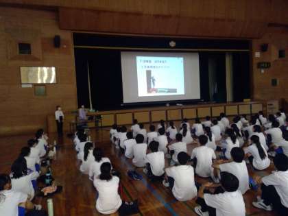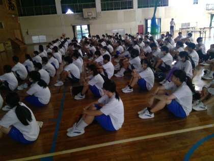 本日の午後、3年生は「生と性のカリキュラム」を行いました。1年、2年時と続けて行われてきたこの取り組みも今年で3年目、養護教諭の近藤先生と保健センターの方からお話を聞きました。今回は「生命の誕生」と「性感染症に対する予防」について学びました。暑さが厳しい体育館で行いましたが、だれることなく集中して真剣な態度でのぞむ生徒たちでした。