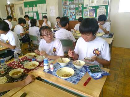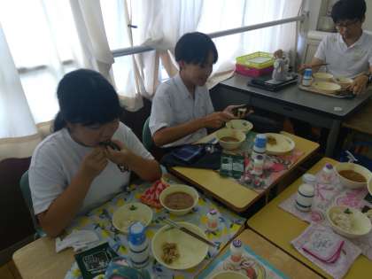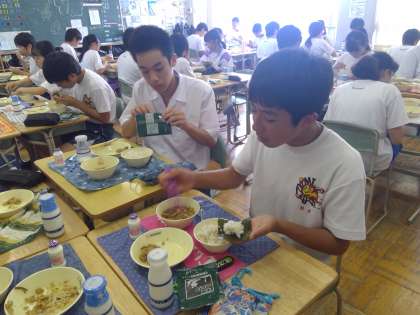 今日の給食は海苔巻きでした!今年はじめてのメニューに生徒たちは嬉しそうにそれぞれ手巻きにして美味しくいただきました!