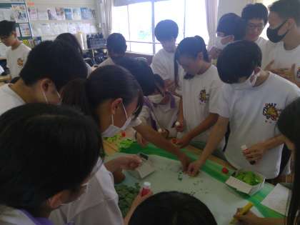 3年2組は学級目標「はらぺこあおむし」の掲示物をクラスみんなで作りました。色紙を小さく切ってはっていく地道な作業ですが、学級みんなでやれば楽しい時間!笑顔いっぱいの1時間でした!