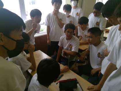 3年3組は学級活動の時間に、コーラス大会の楽譜について話し合っている様子でした。楽譜の色についてそれぞれがこだわりをもっていて、なかなか決まらずにいました。意見交換をしながらも、それぞれが前向きな姿勢が伝わってくる3組の生徒たちの様子でした。