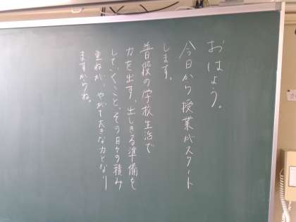 実力テストを終えて、今日からいつも日常が始まります。担任の先生からもメッセージが朝の黒板にしは書かれていました。みんなで頑張っていこうというクラスの雰囲気が伝わってきました。