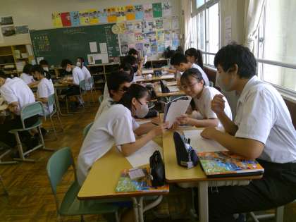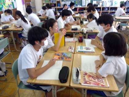 週のはじめの月曜日の授業の様子です。グループでの学び合い、みんないい顔をしています。関わり合うことが楽しい、楽しく関わり合い、学びを深めていってほしいものです。