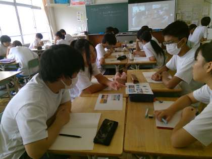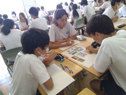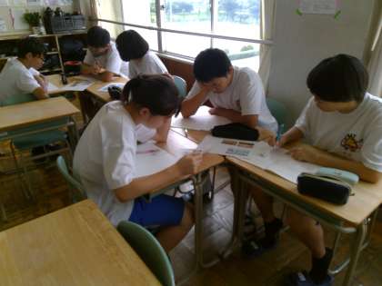 資料を見合ってじっくり考える生徒たち、今日も学びを楽しみながら頑張っています!