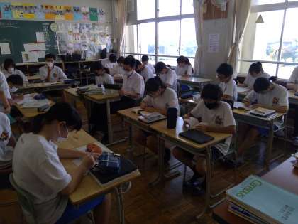 今日から朝の短級前の時間はテスト勉強になります。落ち着いた雰囲気の中で、各自が自分の取り組みたい教科の勉強に励んでいました。1週間後には中間テストが始まります。みんな気合い十分です!