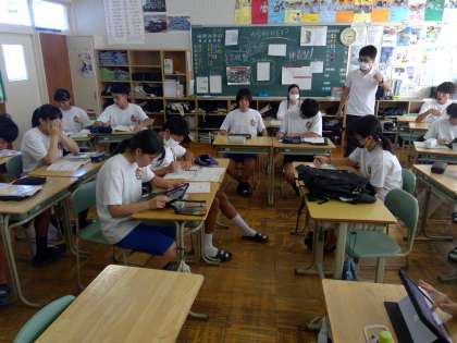 生徒たちが待ち望んでいたテスト対策プリントが配布されました。週末の学習にむけて、気合い十分の生徒たち、配布した時に「やった〜、待ってました」という声が聞こえてきました。この3連休で最後の追い込みをかけてほしいと思います。(対策プリントについてはロイロノートで配信もしましたので、タブレットでも見ることができます。)
