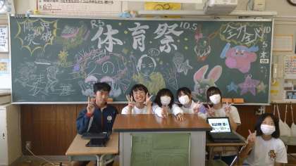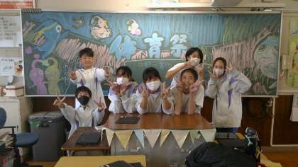 昨日、帰りに仕上げてくれた各クラスの黒板アートを紹介します。