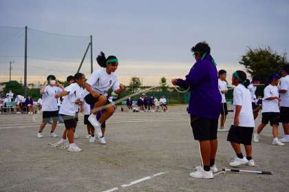 大縄跳びの様子です。3分間に何回跳べたかを競います。