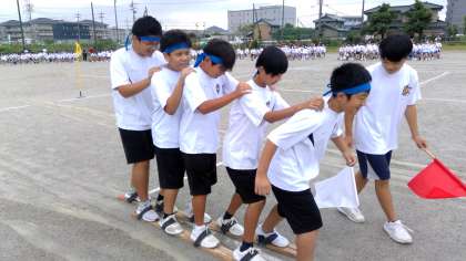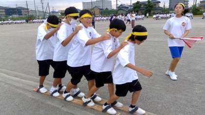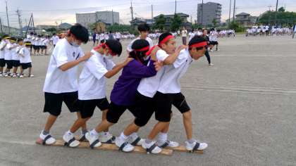 体育祭、ムカデ競走の様子です。息ぴったりで進んでいくクラスもありました。