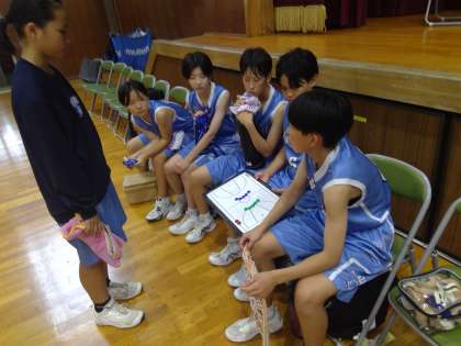 10月8日(日)女子バスケ部は小牧市内の新人戦に参加しました!初戦の相手は北里中学校、人数は岩崎中同様ギリギリのチームですが、今年の優勝候補の筆頭!高い技術をもつ選手がたくさんいるチームです。試合は序盤から相手に圧倒され、点差をつけられる苦しい展開、前半はまったく何もさせてもらえないほどやられました。後半に巻き返しをはかるも相手も試合巧者なかなか思うように点差をつめることはできません。そんな苦しい展開でも選手はあきらめず最後までルーズボールやディフェンスをくらいつき、頑張り抜きました!ただ、試合は完敗!!一から出直しです!次戦う時には、もっと強くなって勝利できるよう負けたこの悔しさを力にしていきたいと思います。