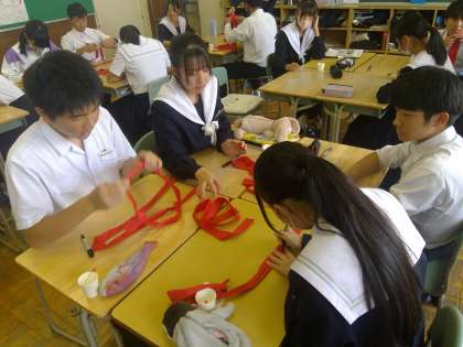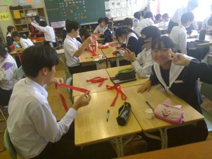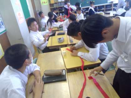 体育祭の思い出を刻もうと各自に配られた鉢巻きにクラスメイトたちが次々と名前を書いていたのは3年1組の教室でした。とても嬉しそうな生徒たちの様子が印象的でした。