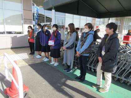 コロナ禍でずっとできなかったジュニア奉仕団による募金活動が行われました。歳末助け合い募金です。募金をしていただいたときの笑顔と「ありがとうございます」という言葉がよかったです。生徒の皆さん、お疲れ様でした。