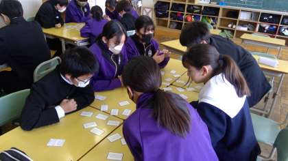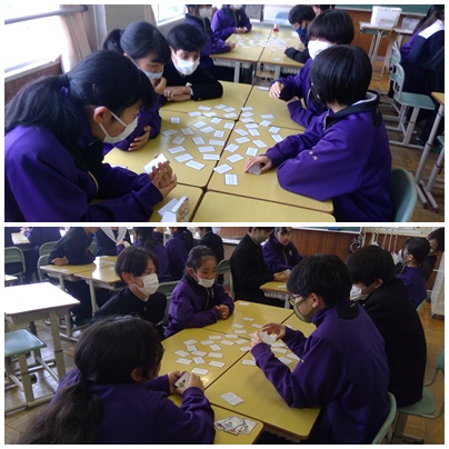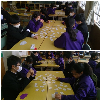 伝統の文化に親しむ 1年 公開日 2024/01/10 更新日 2024/01/10 1年 1年生の国語の授業で「百人一首」を行いました。ほとんどの生徒が初めてやるということで、普通のカルタ取りと同じ状態でしたが、楽しみながら伝統文化に触れることができました。 いいね(0)