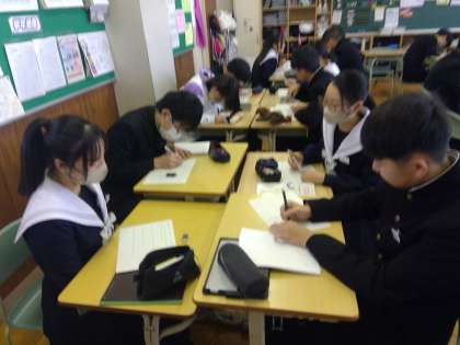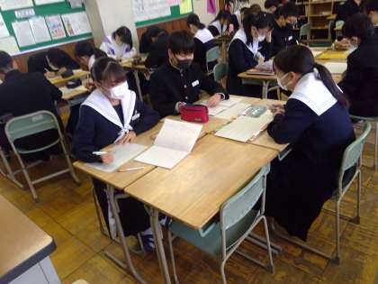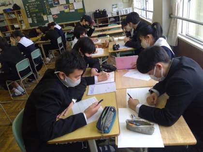 3年生の授業の様子、難しい課題に対しても粘り強く考え、わからないところはグループで教え合い、学び合う姿が見られました。