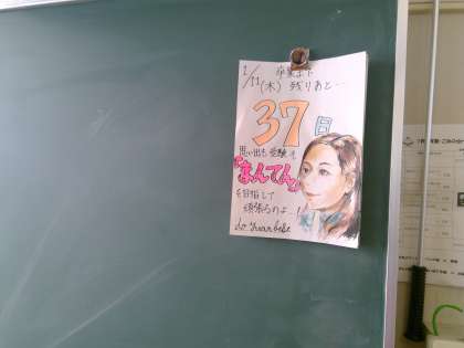 教室に掲示されたカウントダウンカレンダーに担任の先生の似顔絵を描いているクラスがありました。心をこめて描かれた作品は見る人が思わず「おお〜すごい!」と声をあげたくなるそんな素晴らしいものでした!(3−2の教室黒板より)