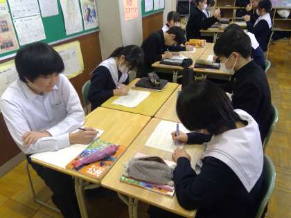 学び合いを楽しむ生徒たち、間近にせまった入試にむけてピリピリした雰囲気があるかと思いきや穏やかに対話することを楽しみながら課題解決に迫っている様子でした。日々の授業を楽しみながら、学習の力をつけていってほしいと思います。