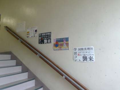 3年生の教室に上がっていく階段の壁面に掲示されたポスター!2月に行われる予定の最後の学習コンクールにむけて掲示されたものです。学習意欲につながってくれればと思います。