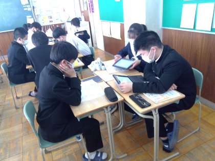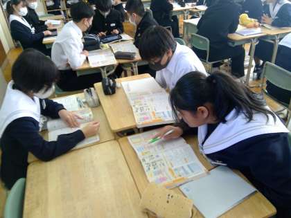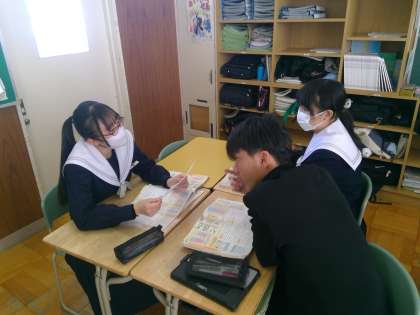 本日の午前中の4時間授業の3年生、より集中して授業に取り組む生徒たちの姿がありました!受験前のこの時期ですが、教室の雰囲気はとても穏やかでグループでの対話を楽しんでいる様子がうかがえました。