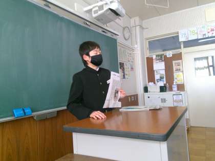 3年生 新聞発表 公開日 2024/01/17 更新日 2024/01/17 3年 石川県の地震の記事について考えたこと、今思うことを新聞発表で語る生徒の姿がありました。その表情からは真剣な思いが伝わってくるものでした。 いいね(1)