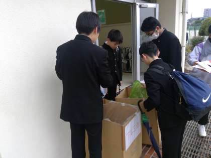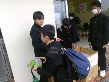 アルミ缶・ペットボトル回収の強化週間も大詰めです。朝から環境委員会の生徒が昇降口で呼びかけ、回収作業に励んでいます。各学級でも委員会の生徒が積極的に声をあげています。最終日の明日はその気持ちにこたえられるといいと思います。