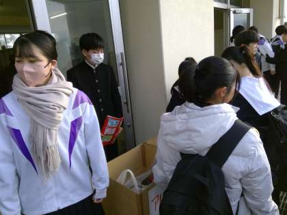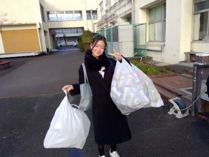 最終日にはこれまで集めたアルミ缶などを一気に持ってきてくれた生徒もいました。大きな袋にいっぱいもってきてくれた人もいました。ご協力ありがとうございました。