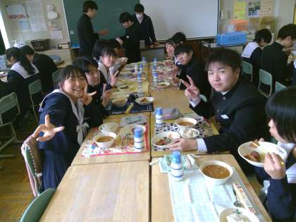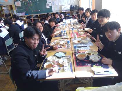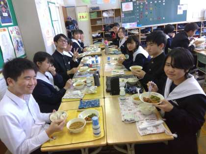 明日から3日間3時間授業の3年生は、今週は月曜日と金曜日しか給食がありません。みんなそろっての給食を笑顔で楽しむ生徒たちでした!