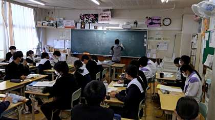 道徳のようすです。「カーテンの向こう」という教材を読みました。
