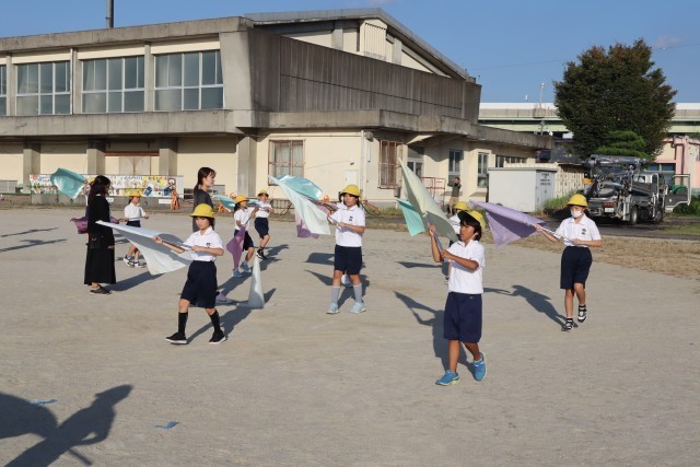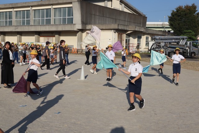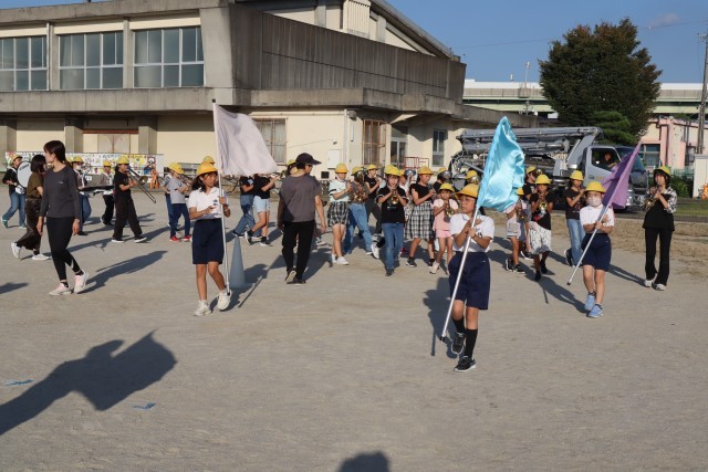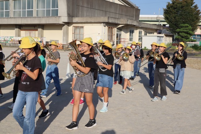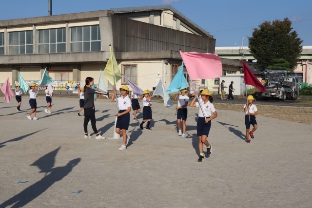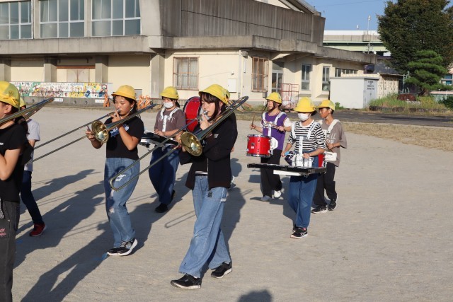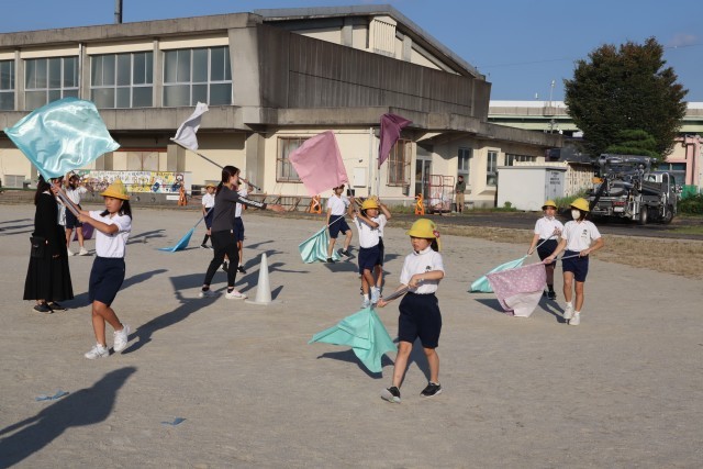 今日は運動場を使って実際に歩きながら演技と演奏をしました。本番まで残りもわずかです。1回1回の練習を大切にしていきましょう。