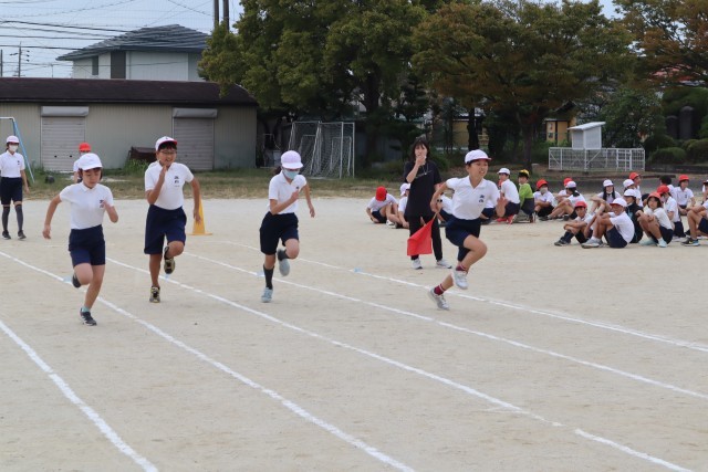 運動会に向けて、徒競走の練習です。