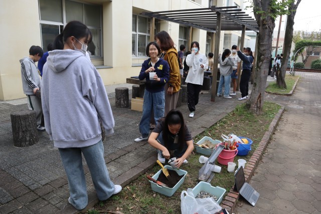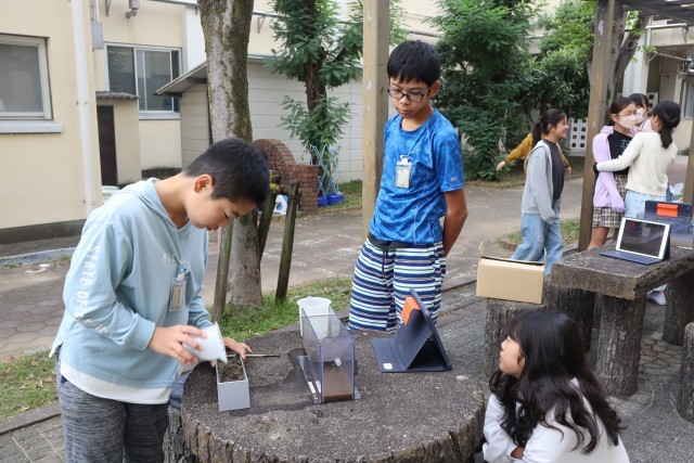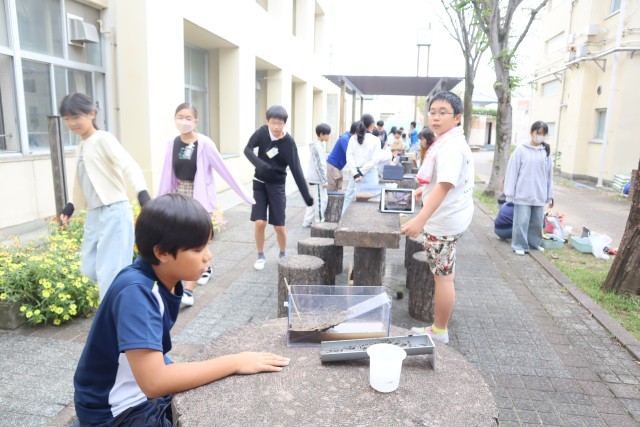 6年生は地層の実験をしているようです。