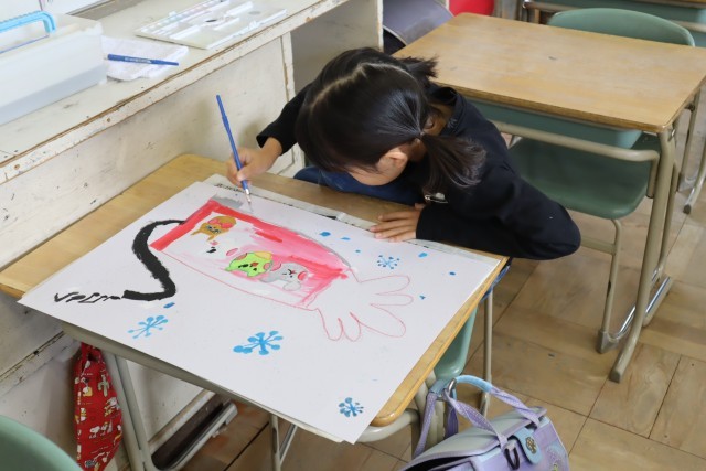 動物たちが仲よく手袋で暖まっている様子がとてもかわいく描かれていました。物語の様子がとてもよく伝わってきます。
