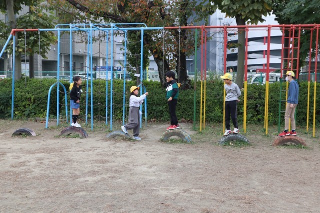 5年生が遊びを考えて、2年生と上手に楽しく活動していました。みんなすごく楽しそうに遊んでいて、とてもよい時間となりました。