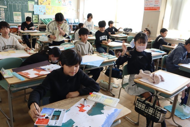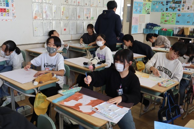 「いかだネコG氏 12のぼうけん」をもとに読書感想画に取り組んでいます。