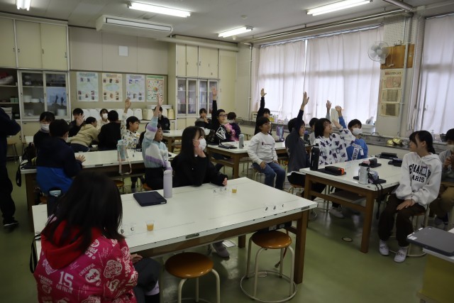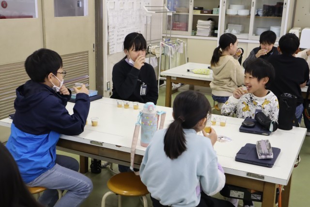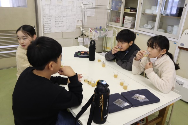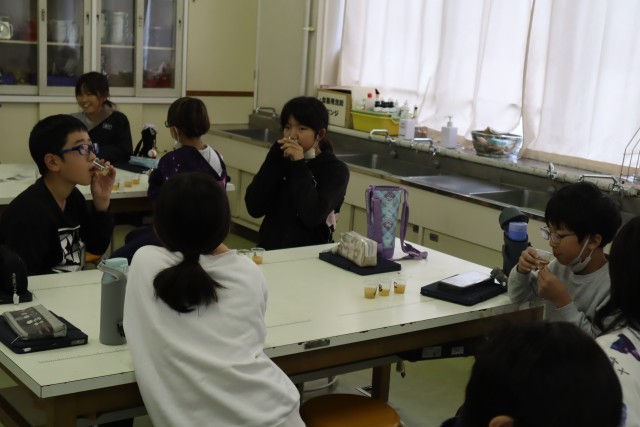味噌だけの味噌汁と、にぼし、こんぶ、かつお節のだしを使った味噌汁を飲み比べ、その違いを実感しました。最後はそれぞれのだしを混ぜることで、相乗効果が生まれることも実感することができました。