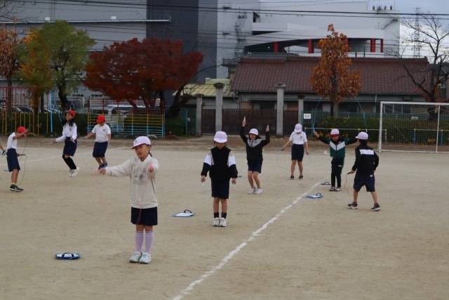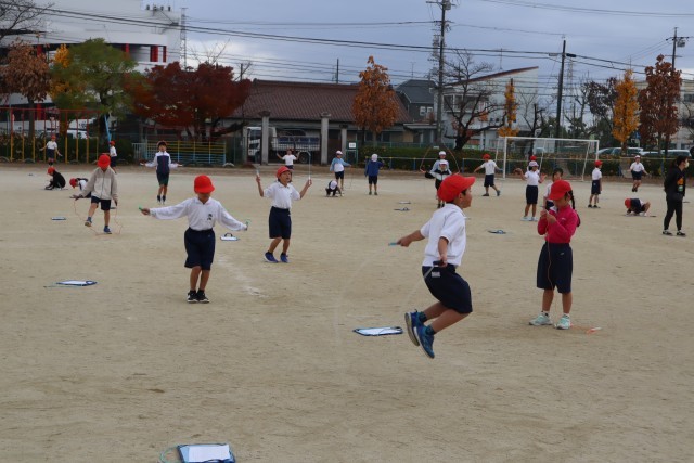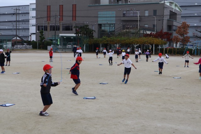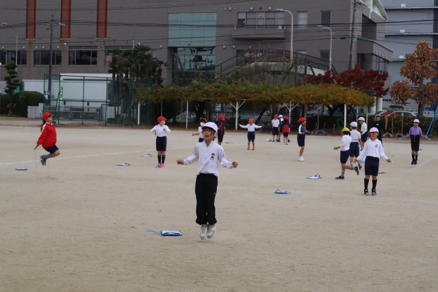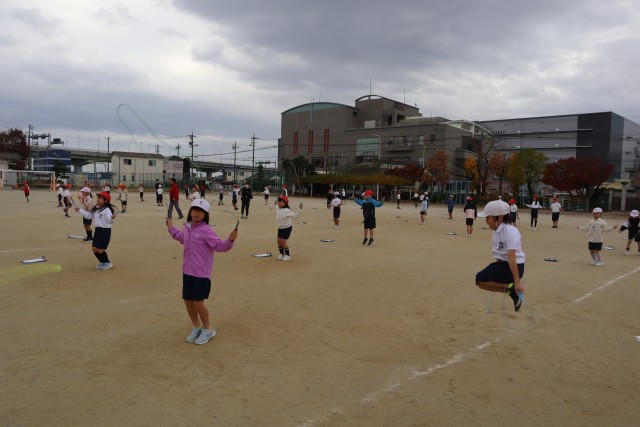 2年生は今日も自分の記録を更新しようと、何度も何度も前跳びや後ろ跳びなどに挑戦していました。みんながんばれ!