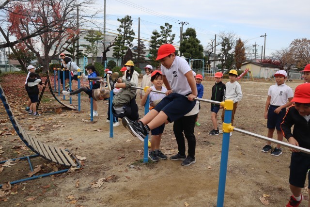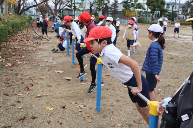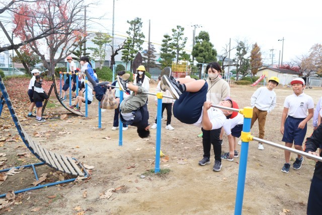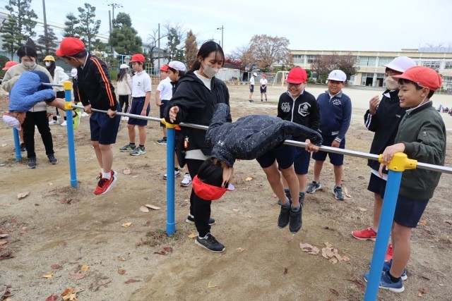 前回りに逆上がり、連続前回りや連続後ろ回りにも挑戦していました。放課にも練習してできる技を増やしていこう。