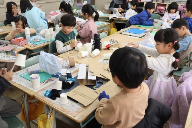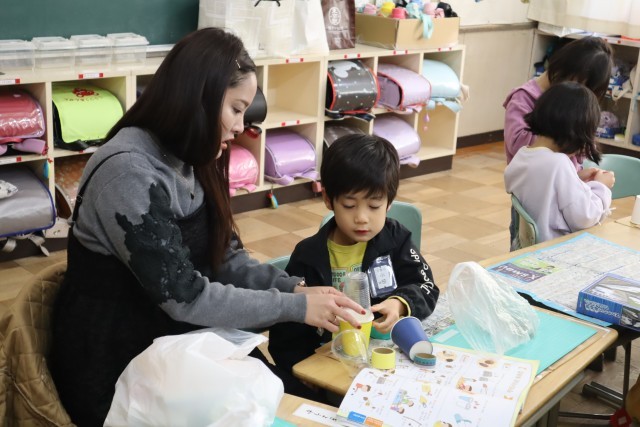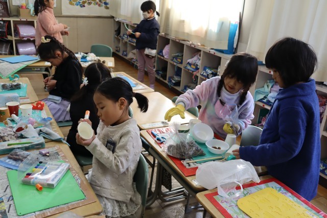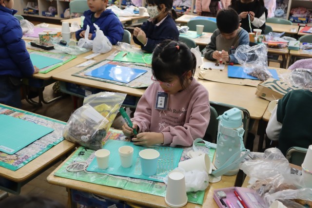 秋の木の実などを使って、楽しいおもちゃを制作しています。