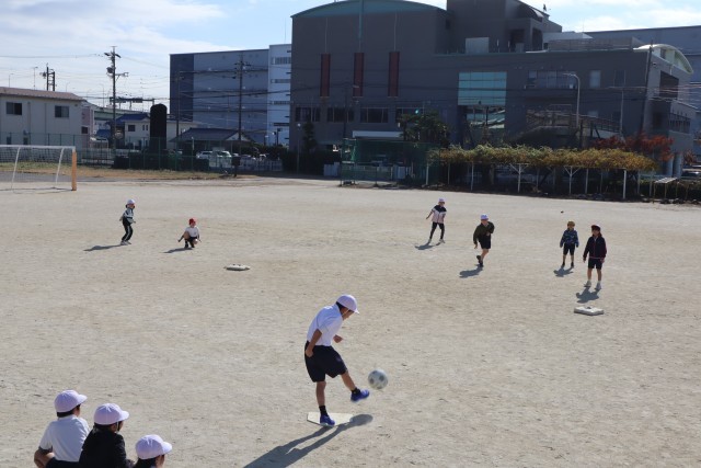 相手の守備の位置を見て、わざと弱く蹴ったり、相手のいない方向を狙って蹴ったりするなど、作戦もしっかり考えて攻撃するようになってきました。子どもたちの成長はすごいですね。