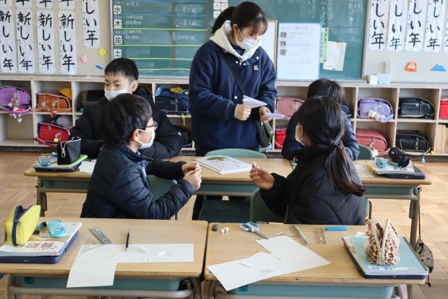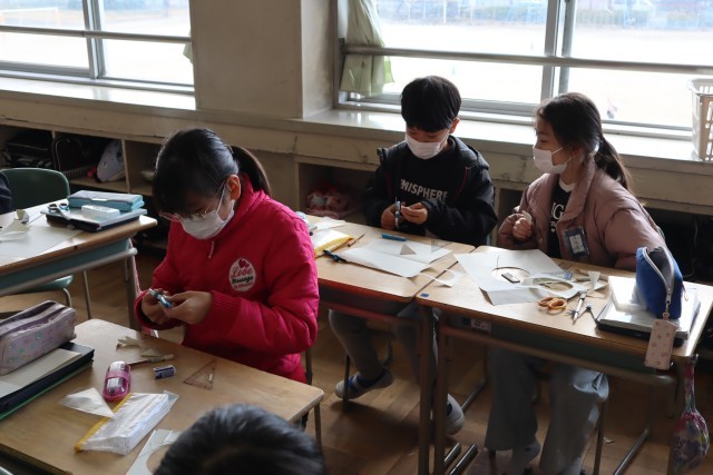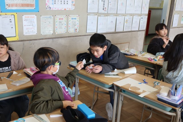 実際に紙で試してみました。さあ、予想した形になっていたかな。頭の中で一生懸命イメージしていました。