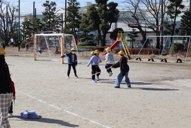 なわとび大会が終わっても、まだまだなわとびが人気ですね。他には鬼ごっこやドッジビーで楽しんでいるグループもありました。