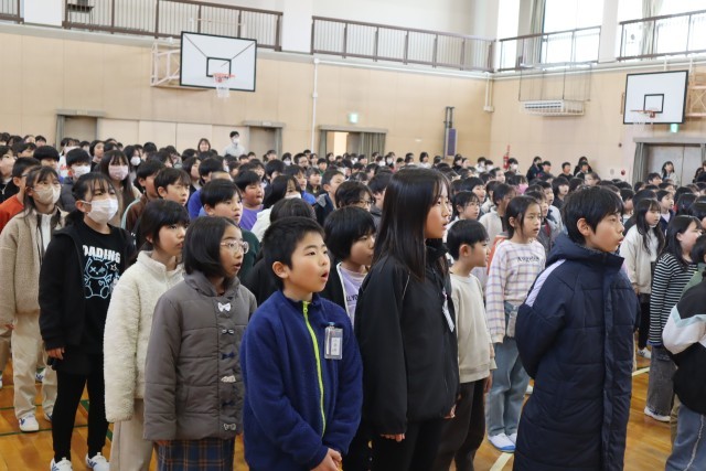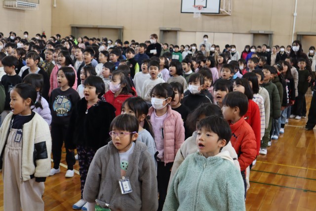 6年生がすばらしい歌声を聞かせてくれたおかげで全校の気持ちが高まり、最高の歌をみんなで歌うことができました。すばらしい思い出ができましたね。