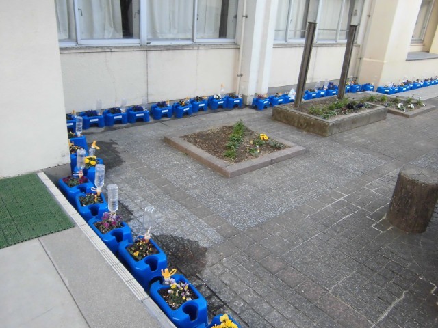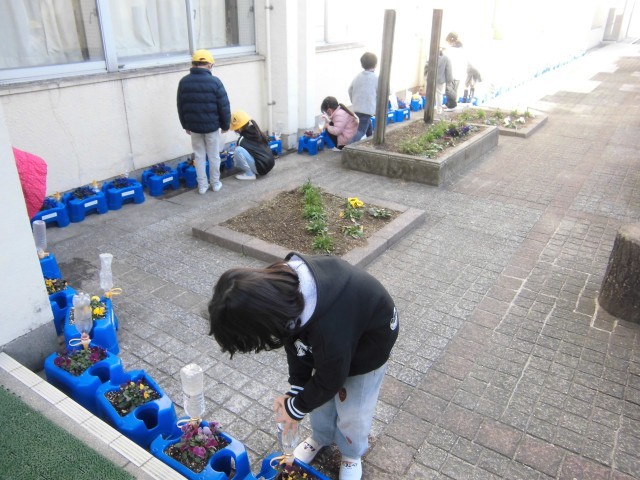 1年生からお水と愛情をもらって、春になると、チューリップもきっとかわいい花を咲かせてくれることと思います。