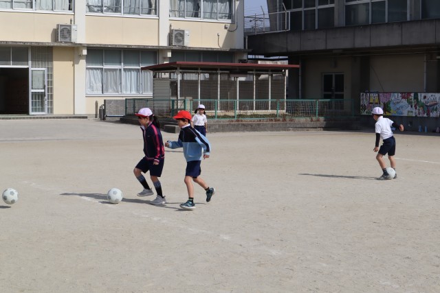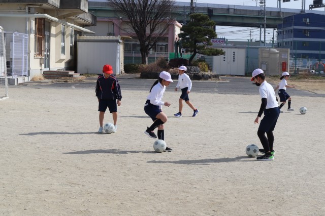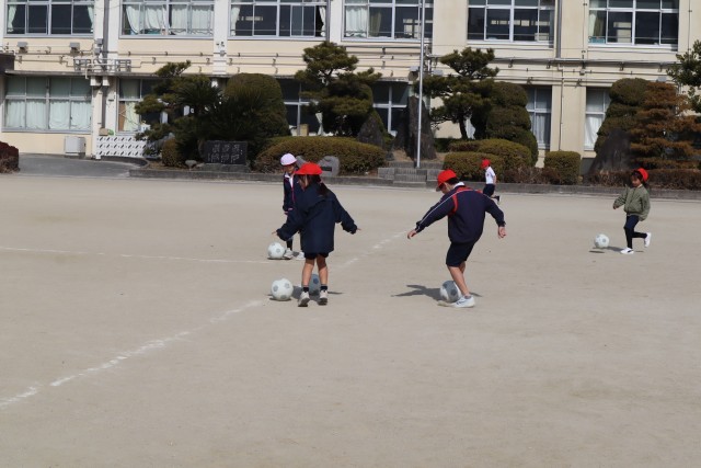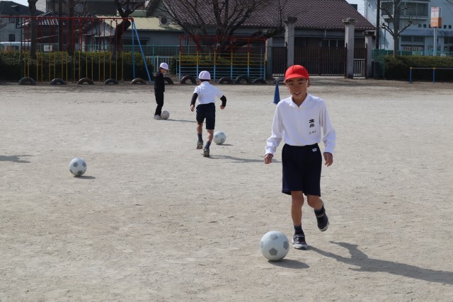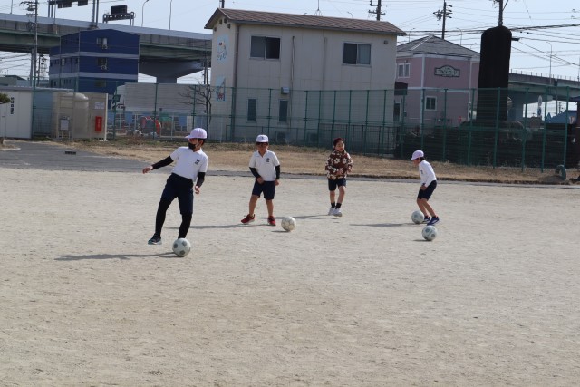 サッカーの練習をしています。