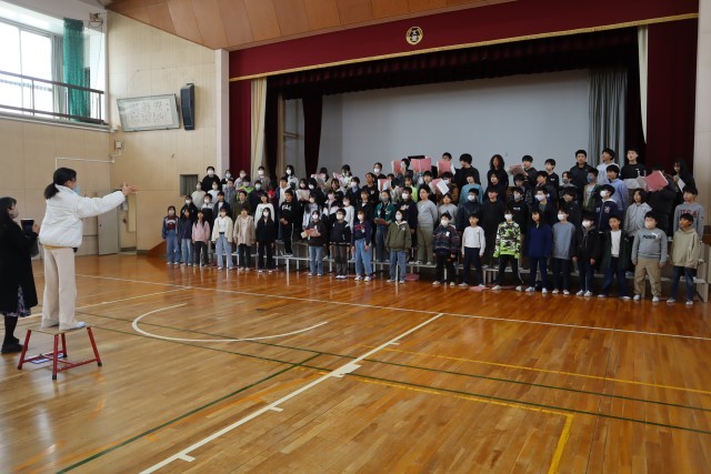 練習するたびに歌声が変化していく様子はさすが6年生です。教えていただいたことをすぐに吸収して表現できる力は本当にすばらしいです。練習を繰り返して自分のものとしていこう。
