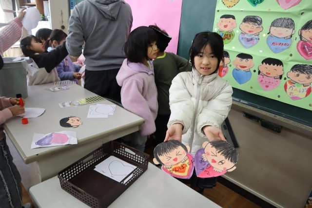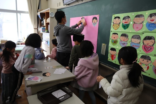 1年生がたくさんの似顔絵を作っていました。